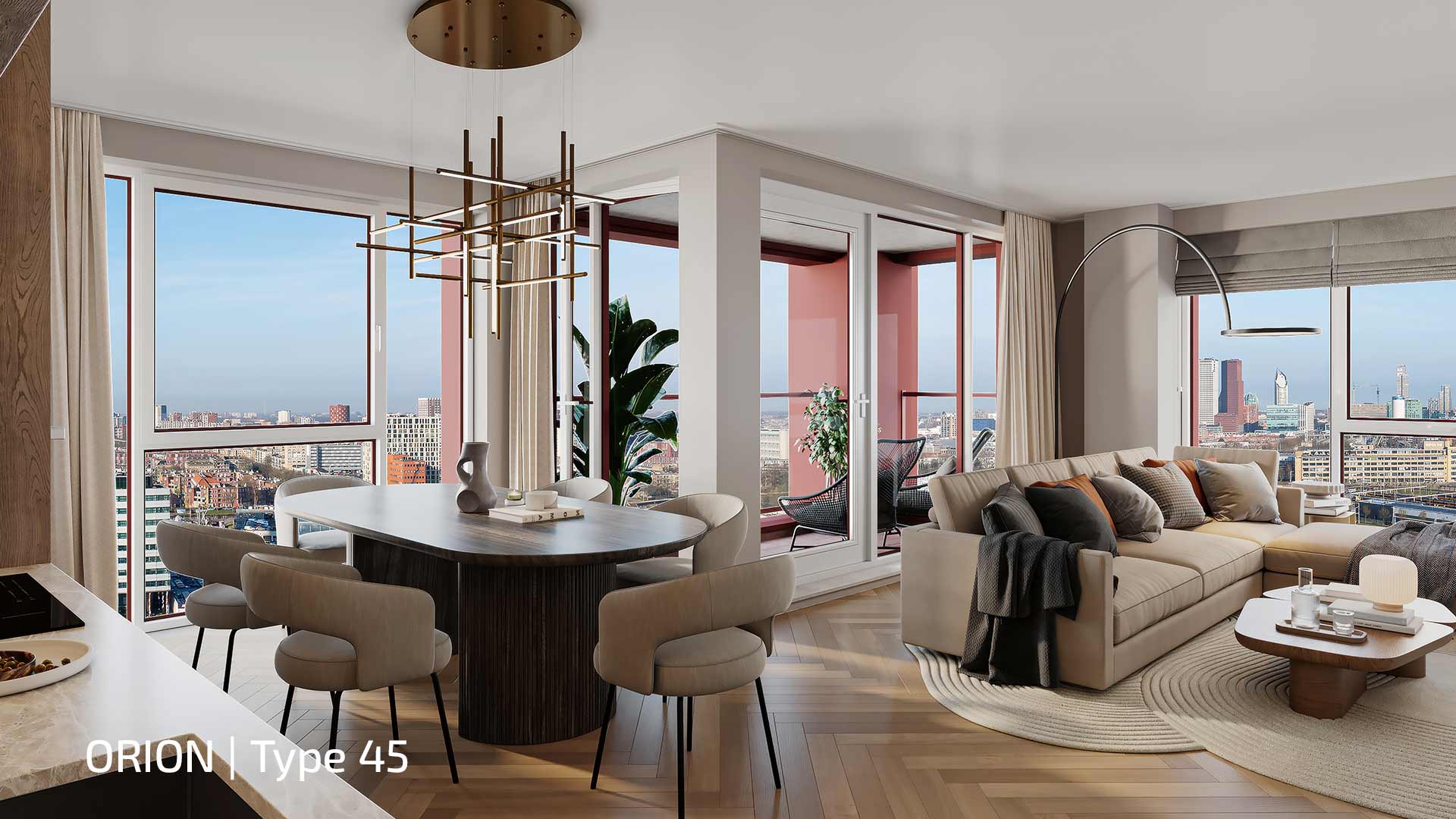 Deze comfortabele XL-appartementen zijn zes penthouses in de kroon van het gebouw, met woonoppervlaktes van 96 tot maar liefst 151 m2. In deze penthouses op de 20e verdieping heb je een zee van ruimte en het mooiste uitzicht over de stad of de westkust. Dus als je van vijf-sterren wonen houdt, dan zijn deze unieke XL-appartementen iets voor jou!